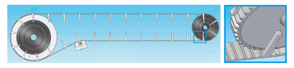 Custom cleat design makes it possible to adapt the belt to factors such as product geometry, the type of path, system inclination, available space or the level of precision required in each movement.