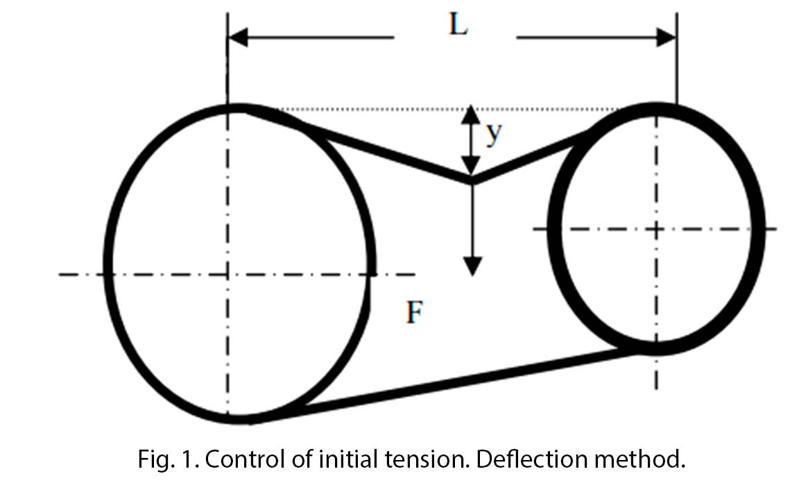 This method recommends controlling the initial tension of the belt taking as reference the value of the control force "F", which causes a constant deflection "y", as can be seen in figure 1. It is a procedure that is convenient to apply when It has a dynamometer for control. Generally, a constant deflection of 16 mm per meter of length "L" of the branch is oriented.